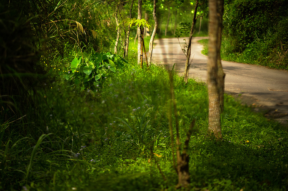 不過正如前面所說的,今年的螢火蟲似乎比較晚出來,我等到了七點半也仍是稀稀落落的幾隻,而且主要都是在路旁的草叢中飛行,拍照效果並不好。路旁的草叢有些甚至比人還高,加上與雨傘節的巧遇,不太可能鑽進草叢拍照,也只能試著從外往內拍。