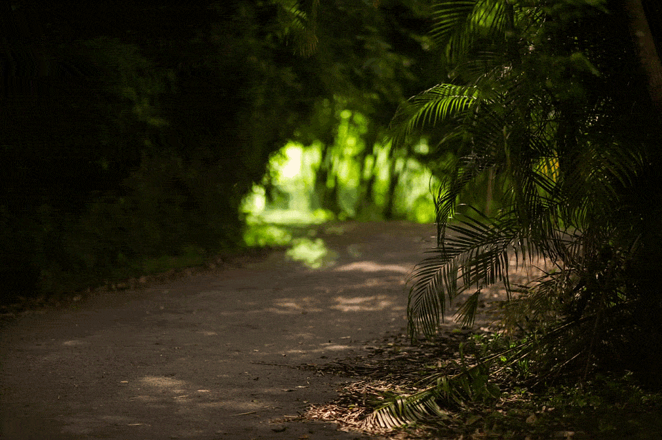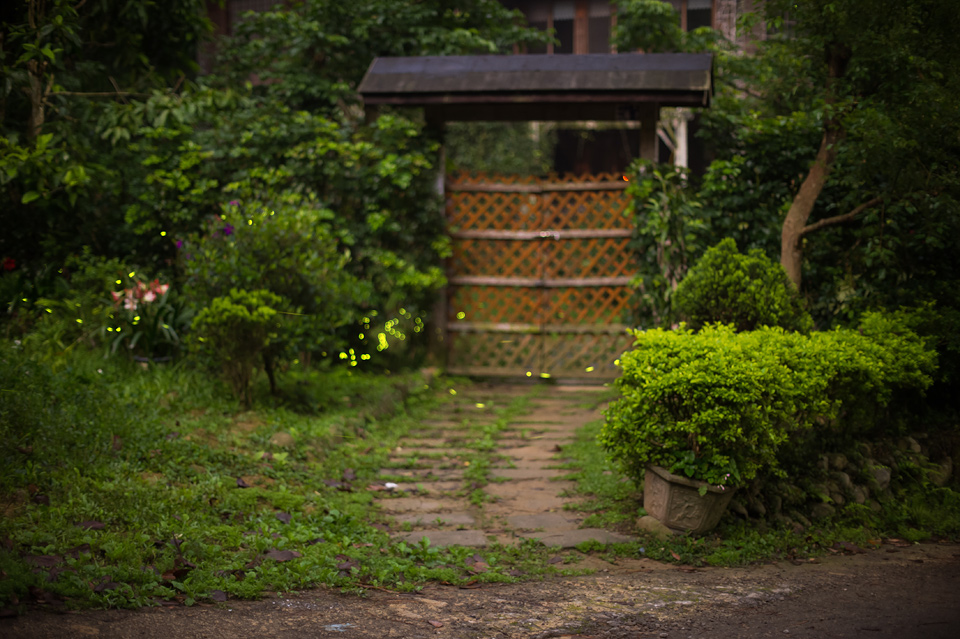 我想最麻煩的還是過亮的月光,就連想長曝試著包圍經過路上的螢火蟲也不行。最後我試著短時曝光數張以疊圖的方式來製作,由於有變換焦點所以有種朦朧感: